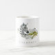 Personalisieren Sie Ihre Daten mit Ihrem Namen oder einem anderen benutzerdefinierten Text. Eine Tasse mit einem Safari/Zoo Erlebnisthema. Ein niedliches Aquarelldesign mit einem schwarz-weiß gestreiften Zebra und einem grünen Savanne-Baum und grauen Aquarellfarben-Spritzern. Ein wildes und exotisches Design.