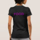 Es ist ein Shirt mit einem SaftBox auf der Front und dem Wort "NAHRUNG" auf der Rückseite.