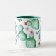 Genießen Sie, an Ihrem Morgenkaffee oder -tee von dieser fantasievollen, hochwertigen Keramik-Tasse zu nippen. Wunderliche Watercolor Succulents tanzen vollständig um die Tasse und schauen von jedem Winkel reizend. Die Illustration umfaßt echeveria und Kaktus in den Schatten des Smaragds, des Saphirs und des aquamarinen, betont mit heller rosa Blüte! Der grüne Innenraum der Tasse löste die Succulents schön aus.