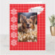 Rotes und weißes Foto Weihnachtskarte mit weißen Schneeflocken. Sag deinem Hund, dass ich frohe Weihnachten gesagt habe.