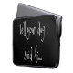 Speichern Sie Ihren Laptop, wenn Sie unterwegs sind, mit einem Sagen Sie Ihrem Hund, ich sagte, sein Laptop Ärmel. Laptop-Ärmel-Design ist mit dem Sprichwort "sagen Sie Ihrem Hund sagte ich hi" vor einem schwarzen Hintergrund, aber kann an Ihre Farbe angepasst werden. Textgestaltung auf T - Shirt für Frauen und zusätzliche Geschenkartikel.