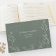 In unserem minimalistisch-trendigen Hochzeitsgästebuch präsentieren wir Ihnen eine ruhige, sagengrüne Farbe, die mit einem schlichten und eleganten Blumendesign geschmückt ist. Die zarte weiße Kalligraphie fügt dem Gästebuch des Grüntöne eine Touch der Eleganz hinzu und ist somit die ideale Wahl für eine moderne Hochzeitsfeier. Das romantische und minimalistische Design präsentiert ein hübsches und elegantes Typografie-Set vor einem grünen Hintergrund und schafft ein gepflegtes und stilvolles Ambiente für Ihren besonderen Tag. Bitte wählen Sie den Papiertyp nach Ihren Wünschen aus.