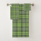 Shades of sage and olive green in an intricate plaid pattern makes this beautiful towel set stylish. Personalize with your monogram in white.