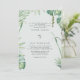 Leichter Hintergrund beiden Eltern listen tropische Hochzeitseinladung. Tropisches Blattwerk.