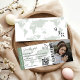 Eleganter SAge grüner Boarding Pass Hochzeitskarte, ein Portrait des verlobten Ehepaares, ein Flugzeug mit Loop Trail und eine leicht bearbeitbare Save the Date Vorlage. Denken Sie daran, den Text auf der Rückseite des Monogramms zu ändern.