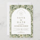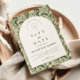 A sophisticated botanical design featuring rich green foliage and soft ivory blooms, framed within a timeless arched layout. The deep, nature-inspired tones bring a sense of depth and refinement, while the clean typography keeps the overall look elevated and effortless.