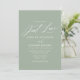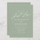Laden Sie Freunde und Familie ein, sich mit dieser modernen Einladung an der Freude Ihrer Hochzeit zu beteiligen, die ein elegantes Drehbuch auf einem schlauen grünen Hintergrund enthält.