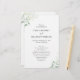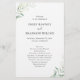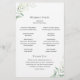 Elegantes botanisches Hochzeitsprogramm mit einer schlichten Anordnung mit einem Hauch von Eukalyptusgrün in einem hübschen Schatten von Salbei grün in der oberen links Ecke und in der unteren rechten Ecke. Eine einfache und moderne Wahl, die sich perfekt für eine Hochzeit im Frühling oder Sommer eignet.