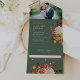 Dieses elegante All-in-One-Hochzeitsangebot besticht durch handbemalte Aquarellfarben in Orange, Kupfer und Terrakotta-Blätter, cremefarbene und beige Dahlien sowie wunderschöne rostfarbene Rose auf einem schlauen grünen Hintergrund. UAWG ist in dieser stilvollen Einladung enthalten. Finden Sie passende Artikel in der Sage Autumn Romance Collection.