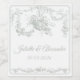 Erhöhen Sie Ihre Hochzeitstischdekoration mit diesem raffinierten Toile de Jouy-Flaschenetikett in einer eleganten salbeigrauen Farbpalette. Inspiriert von klassischen französischen Stichen des 18. Jahrhunderts, zeigt dieses Design einen aufwendigen Blumenrahmen mit einer zarten hängenden Blumenkorb-Illustration, die zeitlose Romantik und unterschätzte Eleganz in Ihre Feier bringt.