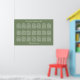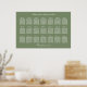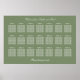 Sage Green 21 Table Wedding Seating Chart Poster, bitte personalisieren Sie die Namen des Paares und die Namen der Gäste zusammen mit einem anderen Text, den Sie vielleicht personalisieren möchten. Ein stilvolles Plakat mit elegantem weißem Text auf einem schönen grünen Hintergrund.