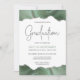 Diese trendige Graduierungsparty lädt mit einer Ober- und Untergrenze von Aquarellfarben in Weihrönen mit Imitaten, die sich durch den silbernen Glitzer hervorheben. Das Wort "Abschluss" erscheint in Imitaten silbernen Glitzer in dekorativen modernen Handschrift Schriftart. Passen Sie die Einladung mit dem Namen des Absolventen in Salbei grün und das Party Details in Kohle grau auf einem weißen Hintergrund an. Auf der Rückseite wird ein passendes Weißgrün- und Silberagatbild angezeigt.