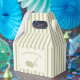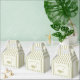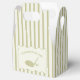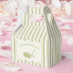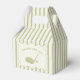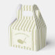 Celebrate golfers of any age with customizable party favor boxes. Your custom message appears in sage green lettering above my illustration of a golf club and golf ball in matching sage green on these treat boxes. The text and graphic are set inside of a cream and sage green scalloped frame against a background of green and cream stripes. The message and graphic design appear on both the front and back of this box.