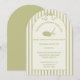 Celebrate golfers of any age with these customizable invitations. They feature a soft cream and sage green color scheme and my illustration of a golf club and golf ball with arch-shaped cream and sage green frame topped with a bow and set against a preppy striped background. Add your own custom headline and all of your party details.