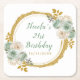 Beautiful birthday party coaster with a sage green and gold faux glitter frame with floral flower arrangements. Perfect for a birthday party. The words can be changed to suit your own details or requirements