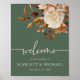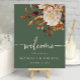 Sage Green Herbst Willkommenspender. Set für Ihre Hochzeit im Herbst mit diesem herzlichen Plakat mit Aquarellblumen und Blätter aus Kupfer, Rost, Terrakotta und Creme. Der schöne grüne Hintergrund fügt ein weiches, raffiniertes Fundament für Ihre Namen und Ihren Hochzeitstag hinzu. Lass deine Liebe-Geschichte von Anfang an - personalisiere dein Poster jetzt.