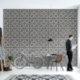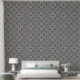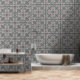 Soft sage green backdrop paired with delicate baroque floral scrolls.