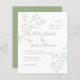 Blumenzwiebeln und Initialen von Sage Green Line Frühjahrshochzeit Einladung. Die Einladung zur Hochzeit mit zartem Braun-Grün-Linien-Kunstblüten in einfarbigem Design, perfekt für eine preisgünstige Frühjahrsfeier. Das botanische Thema wird mit Ästen, Blume und Blätter in den oberen und unteren rechten Ecken hervorgehoben, was eine Touch der Natur hinzufügt. Die Namen der Ehepaare werden in einem Skript-Schriftart schön dargestellt, wodurch ein romantisches und personalisiertes Gefühl entsteht. Die Initialen des Paares sind ebenfalls inbegriffen, was die Einladung noch interessanter macht. Die Rückseite der Einladung enthält einen QR-Code für Online-RSVPs. Das schlanke, grüne Farbschema schafft einen zusammenhängenden und stilvollen Look.