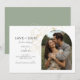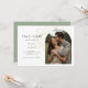 Diese moderne, minimalistische Hochzeit bewahrt das Datum flache Karten mit einem Boho-Arch-Paar Foto, delikate Imitation goldenen Blumenelementen und ein zeitgenössisches Set von Schriftart in Jetblack. Die Blume wird auf der Rückseite vor einem schlauen grünen Hintergrund wiederholt. Dieses Design ist modern und elegant. Ideal für das stilvolle und elegante Paar.