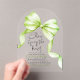 Chic, feminine, and truly unforgettable — this acrylic bridal shower invitation adds a modern, luxe twist to your celebration. Featuring a soft green watercolor bow that gracefully ties into the theme, it beautifully symbolizes the moment the bride-to-be is about to "tie the knot."