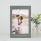 Sage Green Budget Hochzeit Dankeschön Karten, die ein Foto auf der Vorder-und Rückseite haben. Die Dankeschön-Karten enthalten eine moderne, handgeschriebene, kursive Schriftzeichen-Typografie, die elegant, einfach und modern nach einem minimalistischen einfachen Hochzeitstag-Fest zu verwenden sind.
