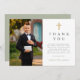 Sage Green Cross Boy Erste Kommunion Foto Dankeskarte