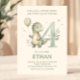 Sage Green Cute Dinosaur 4th Birthday Einladung