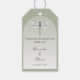 Personalisieren Sie ein modernes Geschenketikett für Ihre Gastgeschenke Hochzeiten mit einem Set von Geschenktasten der Sage Green Dragonfly Gastgeschenk Hochzeit. Das Geschenktag-Design bietet eine einfache und elegante Libelle mit elegantem Drehbuch und moderner Typografie für die Namen von Braut und Junggesellen und Hochzeitsdetails. Ideal für Paare, die eine Libelle-Hochzeit veranstalten. Zusätzliche Hochzeitsarbeit und Lieferung mit diesem Design ebenfalls verfügbar.
