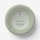 Mit einem Set von "Sage Green Dragonfly Wedding Paper Bowls" können Sie eine schlichte und elegante Papierschale für Ihre Gäste kreieren. Das Design einer Schüssel aus Papier zeichnet sich durch eine einfache und elegante Libelle mit elegantem Drehbuch und moderner Typografie für die Namen von Braut und Bauernhöfen und das Hochzeitstag aus. Ideal für Paare, die eine Libelle-Hochzeit veranstalten. Zusätzliche Hochzeitsarbeit und Lieferung mit diesem Design ebenfalls verfügbar.