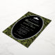 This elegant sage green and silver foil black floral quinceanera invitation has roses, a silver tiara crown, and a silver foil oval with a personalizable template to create your own message. The invitation template is customizable in the listing editor and is also available as a digital download that's printable after you personalize it.