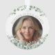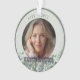 Honor a loved one’s memory with this elegant photo memorial ornament, featuring sage green eucalyptus leaves, framing your cherished photo. The front includes your loved one’s name and dates, while the back displays another photo with the heartfelt message “Forever in our hearts.” A beautiful keepsake to remember and celebrate a life filled with love. Hanging on the Christmas tree or displaying year-round in remembrance.
