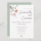 Weiche grüne Eukalyptus weiche rosa Blumendetails und Salbei grün auf der Rückseite der Karte. Elegante Typografie in hellgrau. Einfach zu personalisieren Ihre Daten. Ideal für Hochzeiten im Frühling oder Sommer.