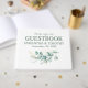 Grün, einfach, eukalyptus, rustikal, grün, botanisches Hochzeitsguestbook. Elegantes, modernes, Skript Gästebuch. Sie können es mit Ihren Daten personalisieren.