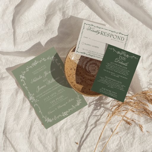 Sage Green Floral Boho Botanical Arched Wedding Einladung
