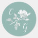 Sage Green Floral Line Art Monogram Wedding Runder Aufkleber