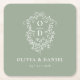 Sage Green Floral Monogram Wedding Wappen Modernes Rechteckiger Pappuntersetzer
