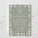 The soft sage green background paired with elegant ivory typography gives this invitation a romantic, vintage stationery feel reminiscent of historic garden estates, European manors, and traditional ballroom celebrations. Intricate floral line art borders and ornate crest details create a balanced composition that feels both sophisticated and effortlessly timeless.