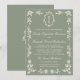Sage Green Floral Old Money Monogram Crest Wedding Einladung