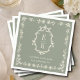 Sage Green Monogram Wedding Napkins, Old Money Crest Wedding Cocktail Napkins, Elegant Botanical Wedding Napkins, Classic Estate Wedding Reception Napkins, Elegant Wedding Tablescape Decor