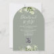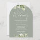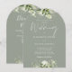Diese moderne Weise grün botanische grün Blätter Blumenzwiebeleinladung kann mit Ihren Informationen in eleganter Typografie mit Ihren Website-Details Hochzeit und Ihrem QR-Code auf der Rückseite personalisiert werden. Entwickelt von Thisisnotme©