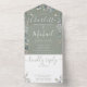 Alles in einer Weise grüne Hochzeitseinladung mit hübschem Grün, Blumenbezeichnungen und schicke Typografie. Die Einladung enthält eine perforierte RSVP-Karte, die für Sie individuell adressiert oder links als leere Karte für die Handschrift der Adressdaten Ihres Gastes verwendet werden kann. Entwickelt von Thisisnotme©