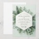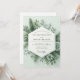 Evoke a sense of serene woodland elegance with this modern botanical design. A delicate palette of soft sage green and dusty mint highlights an arrangement of lush succulents, pine sprigs, and assorted greenery. The artwork's ethereal, misty quality creates a tranquil and sophisticated atmosphere for your special day.
