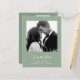 Diese einfache und stilvolle, schlaue grüne Hochzeit speichern die Datums-Postkarten mit whimsical, ivory Vintagen Stil Skripttypografie mit Ihrem Foto und einen scannbaren QR-Code für Ihre Hochzeitswebsite oder Details.