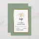 Mit dieser eleganten RSVP-Karte mit modernem Drehbuch und schwarzem Text, inklusive einem künstlerischen Palmenbaum und metallischem Goldrahmen auf der Vorderseite der Karte, können Sie Ihren Gästen auf Ihre Hochzeitseinladung antworten. Auf der Vorder- und Rückseite ist ein schlauer grüner Hintergrund.