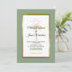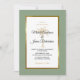 Mit dieser eleganten Einladung mit modernem Drehbuch, Gold und schwarzem Text, inklusive einer tropischen Palme und metallischem Goldrahmen, laden Sie Ihre Gäste ein, Ihren besonderen Tag zu feiern. Auf der Vorder- und Rückseite der Karte befindet sich ein "Salbeigrün". Wenn Sie Hilfe oder eine individuelle Bestellung benötigen, kontaktieren Sie mich bitte.