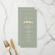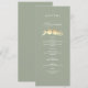 Personalisierte Salbei-grüne Hochzeitskarte mit elegantem Imitat, Goldlovebirds-Illustration und Gästebame an der Spitze. Die stilvolle und gepflegte Touch für jeden Ort bietet ein abwechslungsreiches Menü für ein festliches Abendessen. Ideal für romantische, moderne Hochzeiten im Frühling, Sommer oder Herbst. Entspricht der vollen Goldlovebirds Hochzeitssuite.