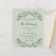 Ein wunderschöner grüner Hintergrund mit Lavendel-Blume und Eukalyptusgrün. Personalisieren und Ihre Namen und Details. Zurück: Fügen Sie Ihre Weburl zu Ihrer Hochzeitswebsite für UAWG und weitere Details hinzu. 1 Blatt = 1 Einladung mit Druckkante bis Kante.