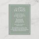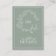 Wir lieben diese trendige, moderne weise grüne Detais Karte! Es ist einfach, elegant und so hübsch, mit einem handgezeichneten, grünen Kranz umgeben von einem modernen Hochzeitsmonogramm. Es ist in eleganter Typografie personalisiert und mit handgeschriebener Kalligrafie akzentuiert. Schließlich ist es in einem zarten Rahmen getrimmt und die Rückseite der Karte enthält die Details, die das Hinzufügen der Informationen, die Sie geben müssen, dies kann auch Fahrtrichtung, Informationen zum Empfang, Hotelinformationen, etc. enthalten. Dies kann auch Ihre Hochzeitswebsite einschließen.Die Karte enthält bis zu 20 Zeilen Text. Text ist oben ausgerichtet und fließt nach unten, Sie müssen unter Umständen die vertikale Positionierung je nach Textmenge anpassen, indem Sie weiter auf Ihre Bedürfnisse klicken. Teil eines passenden Set. Die vollständige Sammlung finden Sie hier: https://www.zazzle.com/collections/sage_green_leafy_crest_monogram_wedding_invitation-119735143483526238 Kontakt-Designer für passende Produkte, um die Suite zu vervollständigen, ODER für Farbvarianten dieses Designs. Copyright Anastasia Surridge für Elegant Invites, alle Rechte vorbehalten.