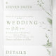 Sage Green Line Art Blume Foto Hochzeit Dreifach Gefaltete Einladung