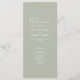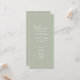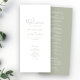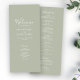 Diese einfach gestaltete und wunderschöne Wedding Day Programmkarte zeichnet sich durch ein elegantes, modernes und minimales typografisches Design mit einem schlauen, grünen Farbthema aus. Bereit für Sie, um mit den Details Ihrer Hochzeitstag Zeremonie. Bitte stöbern Sie in der Sage Green Elegant Minimal Wedding Suite für passende Büroartikel.
